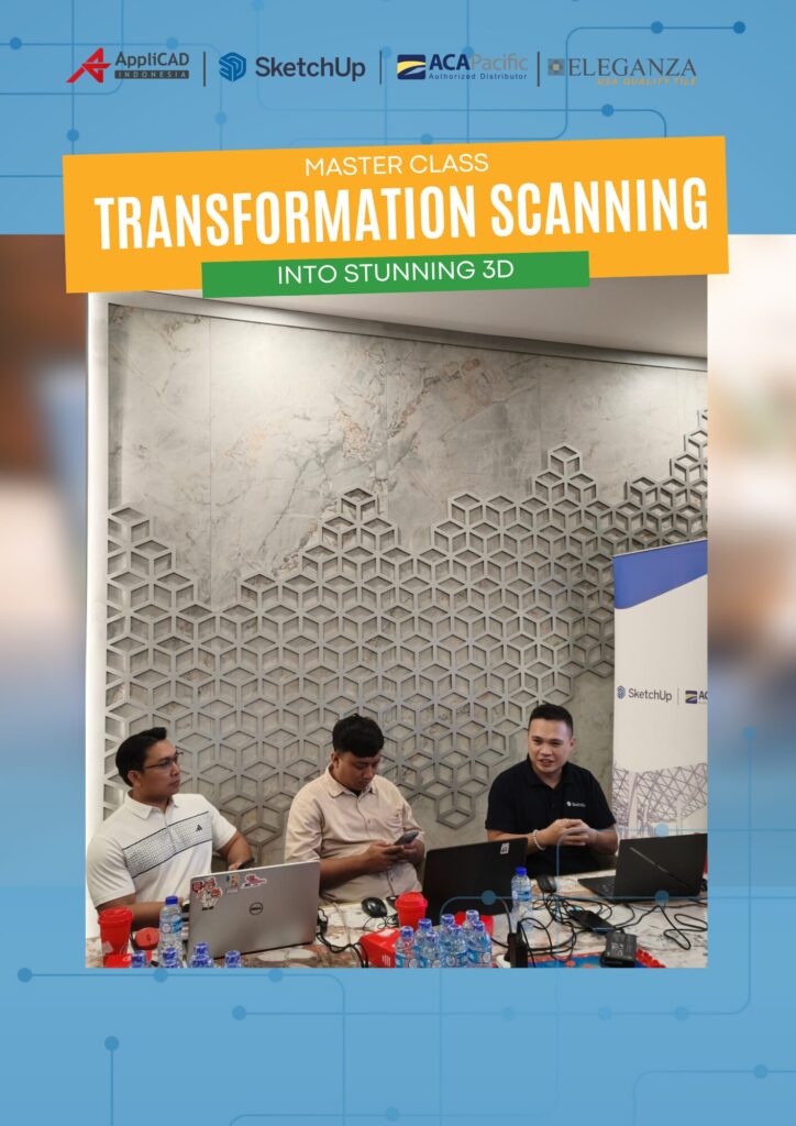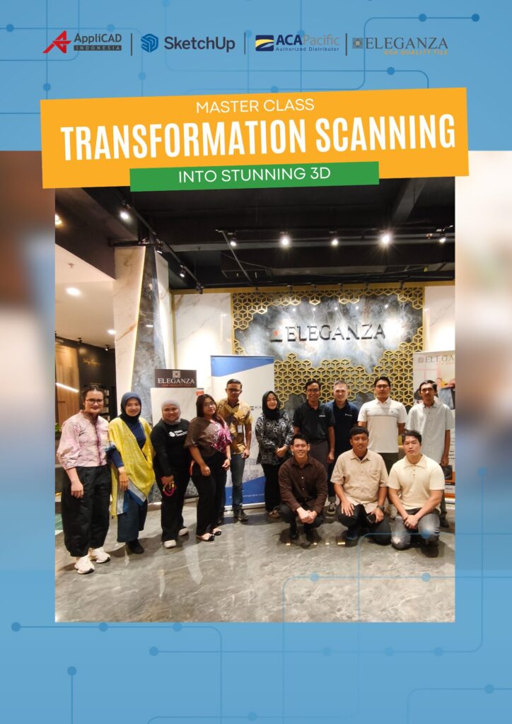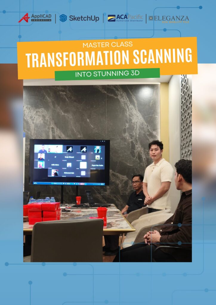 Transformasi desain digital kini menjadi kunci utama dalam meningkatkan efisiensi, akurasi, dan kualitas visual dalam industri arsitektur serta desain interior. Seiring berkembangnya teknologi scan-to-3D, para profesional AEC dituntut untuk mampu mengolah data eksisting menjadi model 3D yang presisi dan visualisasi yang realistis. Hal inilah yang menjadi fokus utama dalam webinar kolaborasi antara Eleganza Tile Indonesia, ACA Pacific Indonesia, dan Applicad Indonesia bertajuk “Transforming Scans into Stunning 3D.” Webinar ini menghadirkan pembahasan mendalam mengenai update terbaru dari SketchUp dan Enscape, dengan narasumber profesional dari ACA Pacific, yaitu Kiki Richardus Susilobroto dan Rudi Hayashi.